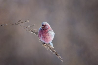Урагус - зимний цветок Сибири" Урагус является аборигеном Сибири. Живет урагус у нас все время – зимой и летом. Для летнего местопребывания выбирает пойменный кустарник у берега реки. Урагус считается одним из лучших певцов среди зерноядных птиц. Глухих лесов он избегает. Для этого у него есть все основания. Собирать семена трав по опушкам гораздо легче. Да и корма на освещенных солнцем местах всегда больше. Зимой же урагус держится по перелескам, где возделанные поля перемежаются с кустарником. Любимое блюдо - семена полыни. Эта пичуга все время в движении. А придет ночь, юркие пташки сложат свои усталые крылышки и присядут рядом, тут же на ветке, подремать. Ночь-то долгая, и тепло беречь надо. Распушив пух и раздув перья, птица как бы образуют воздушную подушку, задерживающую утечку тепла. У урагуса очень общительный характер, одиночества он не выносит. И доверчив – подпускает к себе вплотную. Не считает человек своим врагом. |