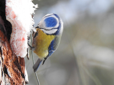 Синяя шапочка или Снова на сале Не могу обойтись одной -двумя фотографиями лазоревки. Дело в том, что вживую вижу ее впервые, поэтому не могу нарадоваться. Фото в другом ракурсе, где яркая шапочка лазоревки видна во всей красе. |