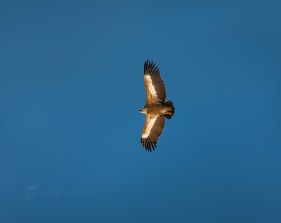 В синеве неба Белоголовый сип (лат. Gyps fulvus) — крупная хищная птица семейства ястребиных, падальщик. Редкий вид. Занесён в Красную книгу России. Очень крупный гриф с длинными широкими крыльями и широким хвостом. Длина тела 95—110 см, размах крыльев 230—280 см, вторая по величине птица в Европе. Белоголовые сипы питаются исключительно падалью. Они никогда не атакуют живое существо. Птицы могут терморегулировать без помощи обмена веществ, что позволяет им ограничивать потери энергии и воды, соответственно долго жить без еды. Кабардино Балкарская республика. Февраль, 2021 год. Из фотопроекта «Кавказ без границ». |
