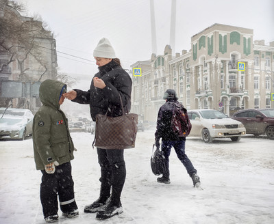 Снимал на телефон, гуляя по снежному Владивостоку