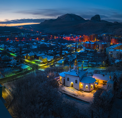 На переднем плане церковь Ольги Равноапостольной в Железноводске.
