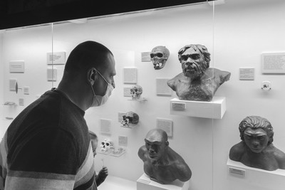 Остроумно получилось! Люди разных исторических периодов вглядываются друг в друга с одинаковой напряжённостью.