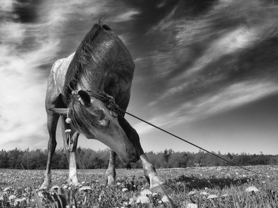 На ухо цветочек сами придумали повесить? Очень хорошо. Только не понял, откуда прыгающий одуванчик у левой задней ноги.