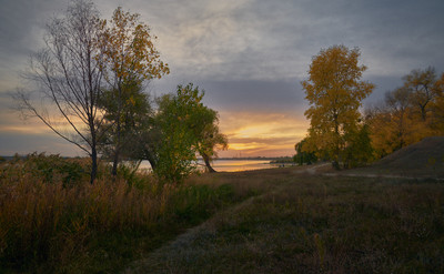 Вечер на осеннем берегу озера