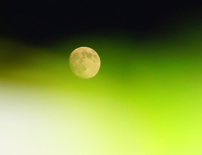 Луна заблудилась в зелёных ветках дерева...- Снимок со вспышкой