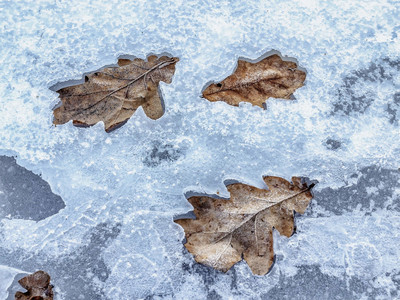 Заморожены.. Утром в начале марте. Листья опавшие, но во льду, заморожены.. Дубовые листья как будто вмяты в лед.. Лед с синим оттенком и листья. В природе ранним утром в начале марта, когда морозно. Синева ледяного покрова весенним утром по календарю.. |
