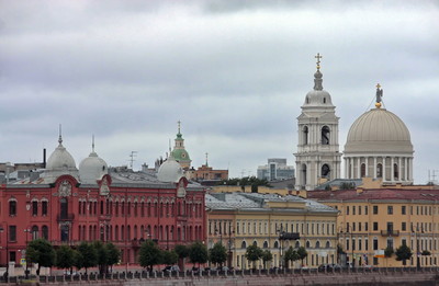 Без названия посерединке-Церковь Благовещения Пресвятой Богородицы.Справа-Церковь Святой Великомученицы Екатерины.И красный -Доходный дом А. А. Стенбок-Фермора...арх. В. П. Цейдлер возвёл трёхэтажный доходный дом(модерн). |