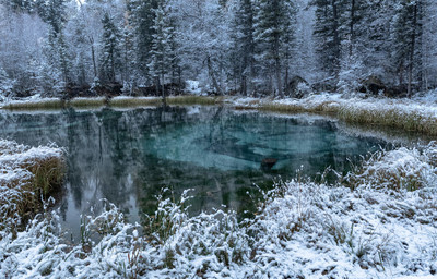 Первый снег . Гейзерное озеро.