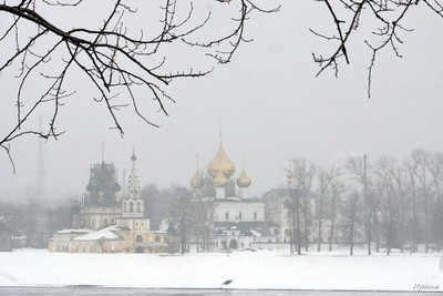 конец марта....Углич....Левее--Церковь Рождества Иоанна Предтечи(в лесах)..правее-Воскресенский монастырь.