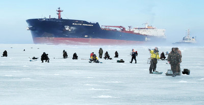 Зимняя рыбалка в районе фарватера на Финском заливе