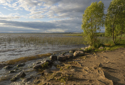 Плещеево озеро. Летний вечер, за час до заката. Ветер, озеро волнуется...