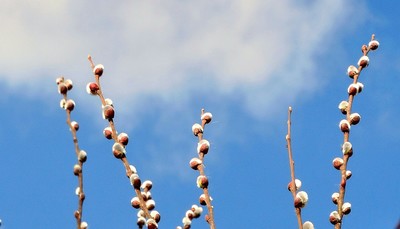 Сегодня окончательно потеплело, небо весеннее, верба набирает силу