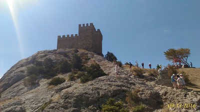 Крым. Консульский замок 14 века Консульский замок 14 века-генуэзская крепость.Три башни,объединенные крепостной стеной,-отдельный оборонительный комплекс.Во времена генуэзцев замок служил жилым домом для его правителя с тайным выходом к морю.В замке были предусмотрены помещения для провизии и воды, склад для оружия на случай обороны. |