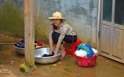 Трогательное бытовое фото.В 90-е так стирала,когда машинка сломалась,а починить было негде.Везде раздрай! Газа нет,даже баллоного. А свет отключали ежедневно.Хорошо,что вода была. Отапливались буржуйкой,трубу вывели в форточку.На ней же и готовила! Романтика!!!-в поход не ходи...У всех соседей то же самое.Выручали друг друга.Не ссорились!!!