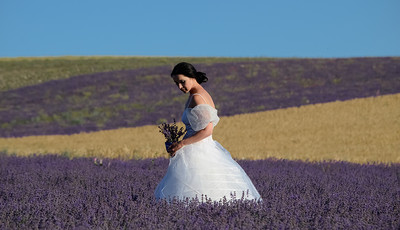 Это невеста в лавандовом поле бродит? В Англии приезжают на лавандовое поле и свадьбы для фотосессии, и модели с фотографами, и просто любители... Только там это не бесплатное удовольствие, а бизнес хозяев поля