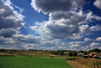 Село,поле,небо,облака