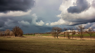 Поляна,деревья,тучи