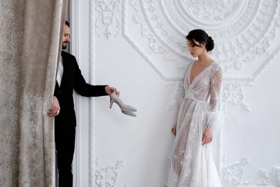 Невесту выгнали, мол чтоб духу твоего не было и туфли свои не забудь? Или это поиск невесты а-ля Золушка? Но тогда с размерчиком неувязочка