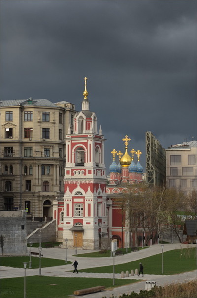 Без названия Церковь Георгия Победоносца на Псковской Горке. на улице Варварке Это место всегда было интересно с точки зрения городского пейзажа/городской застройки. Во времена гостиницы России, церковь была зажата. Теперь она открылась, и что добавилось: в этом ракурсе вид будто игрушечный, будто в ладошках держишь, своеобразный тилт-шифт без размытий. |