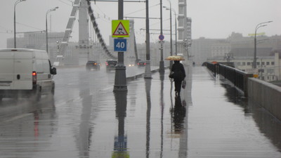 Снято в дождливую погоду на Крымском мосту в Москве.