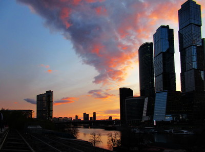 Вечерняя заря над Москвой-рекой.