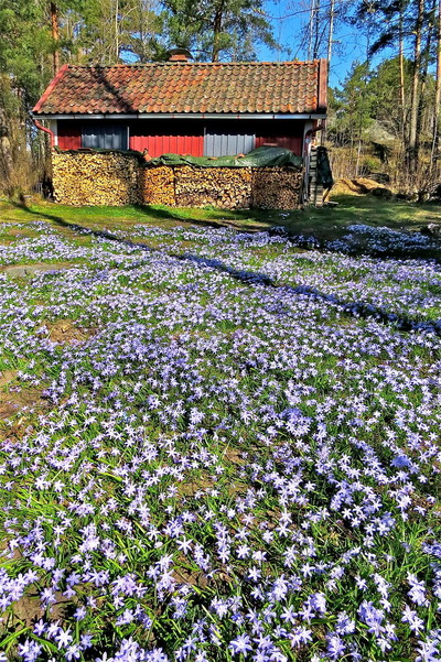 это Пролеска (или сцилла) — растение многолетнее луковичное. Вот так оно может расселяться Многие называют их голубыми подснежниками — цветут в одно время.
