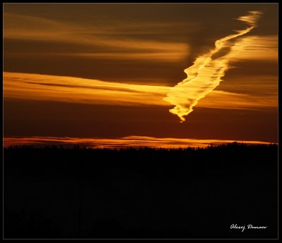 Полоса от пролетевшего самолета расстянулась вот в такую фигуру