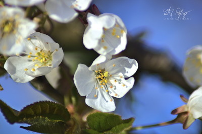 Wildkirschblüten gegen den Himmel