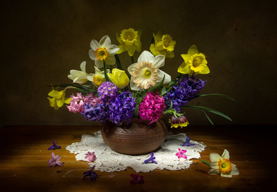 Ein nett gestalteter Frühlingsgruß - welcher auch mit künstlichen Blumen seine Wirkung zeigt.