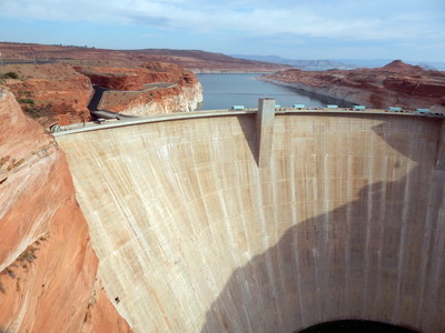 Плотина Гувера Плоти́на Гу́вера, дамба Гувера (англ. Hoover Dam, также известна как Boulder Dam) — уникальное гидротехническое сооружение в США, бетонная арочно-гравитационная плотина высотой 221 м и гидроэлектростанция, сооружённая в нижнем течении реки Колорадо. Расположена в Чёрном каньоне, на границе штатов Аризона и Невада, в 48 км к юго-востоку от Лас-Вегаса, в нескольких километрах от городка Боулдер-Сити; образует озеро (водохранилище) Мид. Названа в честь Герберта Гувера, 31-го президента США, сыгравшего важную роль в её строительстве. |