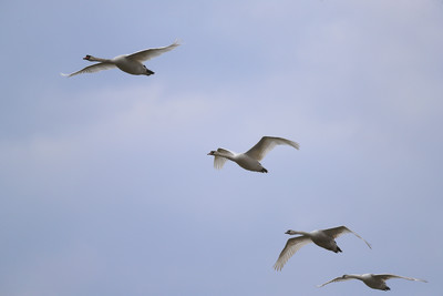 родители-лебеди их дети-подростки совершают веречний облет территории.