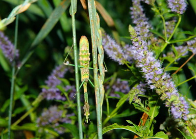 Окраска богомола совпадает со средой,где он обитает.Его скорее увидишь на сделанном снимке,чем в траве.
