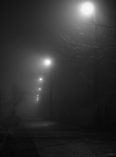 Ночь. Свет фонарей в тумане...