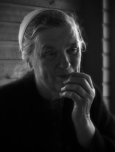 Backwoods, В студии такое не случается, знаю. Попали мы на День Канады в Б-гом забытую деревеньку в Британской Колумбии. Снимаю я интересные поделки на столе в помещении и тут краем глаза увидел эту тетю в углу между окон. Скажу вам, что меннониты, как и аймиши в Пенсильвании, уж очень не любят фотографироваться. Вот я и метров 5 с пуза и снял чем было, а через 10 секунд она отвернулась и все...