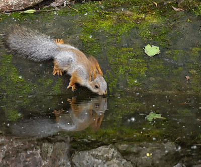белка на водопое..