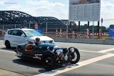 На перекрёстке увидела эту необычную машину, жестом спросила, можно ли сделать снимок. Водитель любезно согласился. В последний момент в кадр влетел белый автомобиль