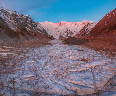 Безенгийский ледник Другое его название ‒ Уллу-чиран ‒ «Большой ледник» — ледник на Кавказе. Является самым большим из сложных долинных ледников на Кавказе. Летняя заря. Начало июня, 2021 г. Кабардино-Балкарский высокогорный заповедник. Из фотопроекта «Кавказ без границ». |