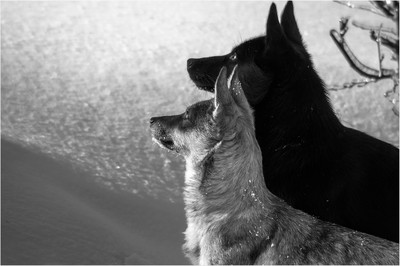 Животные, собственно, не домашние. Бродят вдоль реки, кормятся где придётся. В тот раз "отжимали" булки у зимующих крякв - тем люди ещё принесут