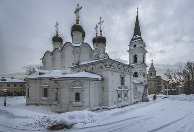 Храм Святого равноапостольного князя Владимира в Старых Садех Москва. Здание храма было построено в 1514-1516 годах по проекту (предположительно) архитектора Алевиза Фрязина (Нового) и неоднократно перестраивалось. Панорамная съёмка. |