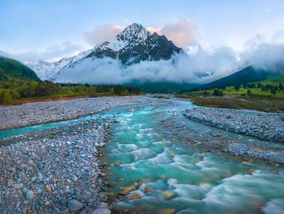 Краски лета в сумерках. Река Гара-Аузусу у подножья горы Тихтенген.